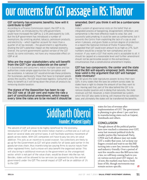 On GST in Dalal Street magazine